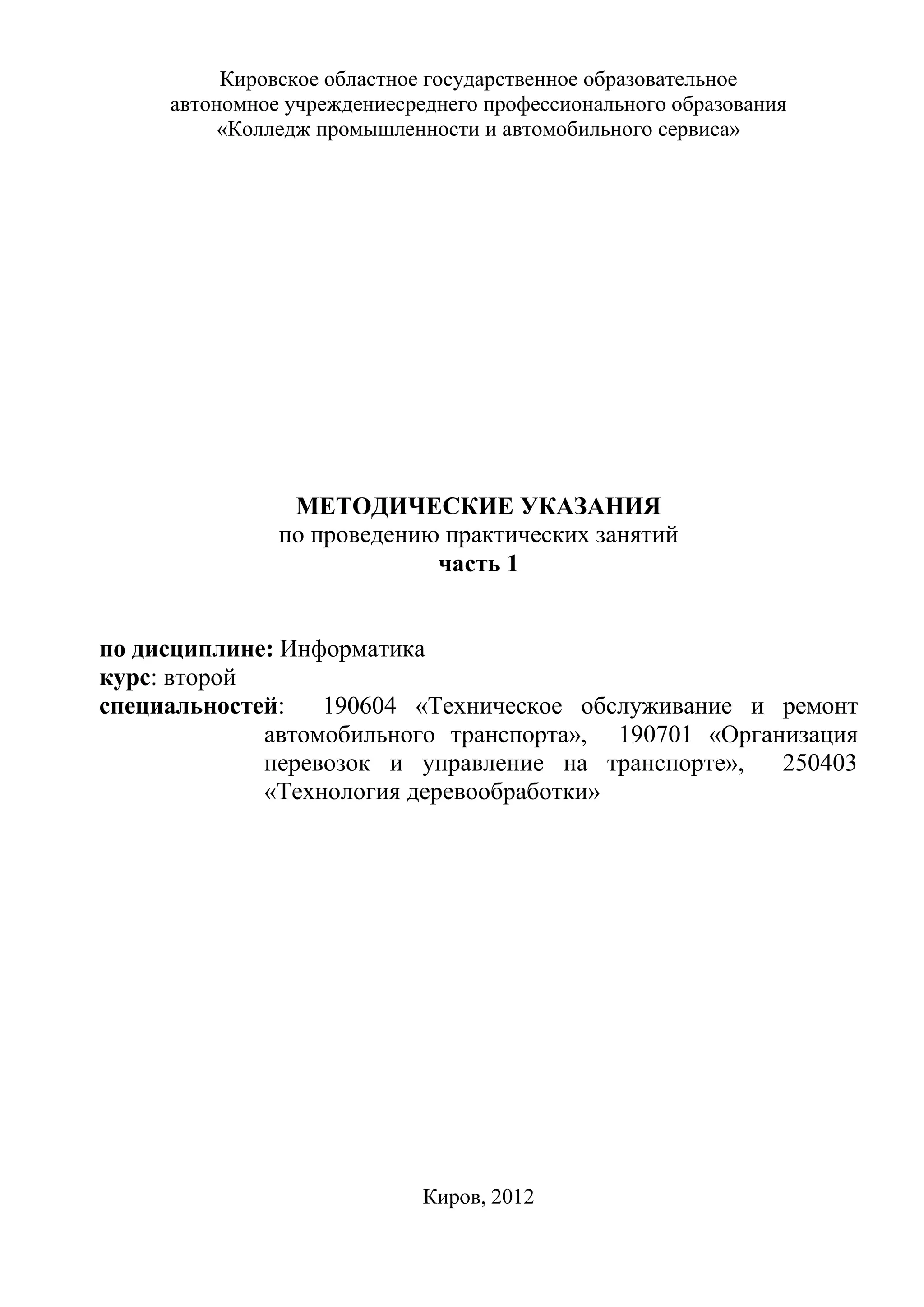 Документ представляет методические указания по проведению практических занятий по информатике для студентов колледжа. Он включает в себя 14 практических занятий, охватывающих различные темы, начиная от поиска информации в интернете и работы с электронной почтой до основ архитектуры ПК и создания документов. Занятия направлены на развитие практических навыков студентов в использовании компьютерных технологий и программного обеспечения.