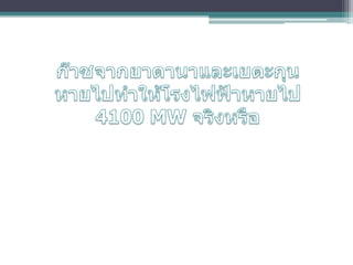 รู้เท่าทัน ดราม่าพลังงาน ตอน 1 ไฟไม่พอจริงหรือ 1. 6. โรงไฟฟ้า กาลังผลิต (MW ) ใช้เชือเพลิง