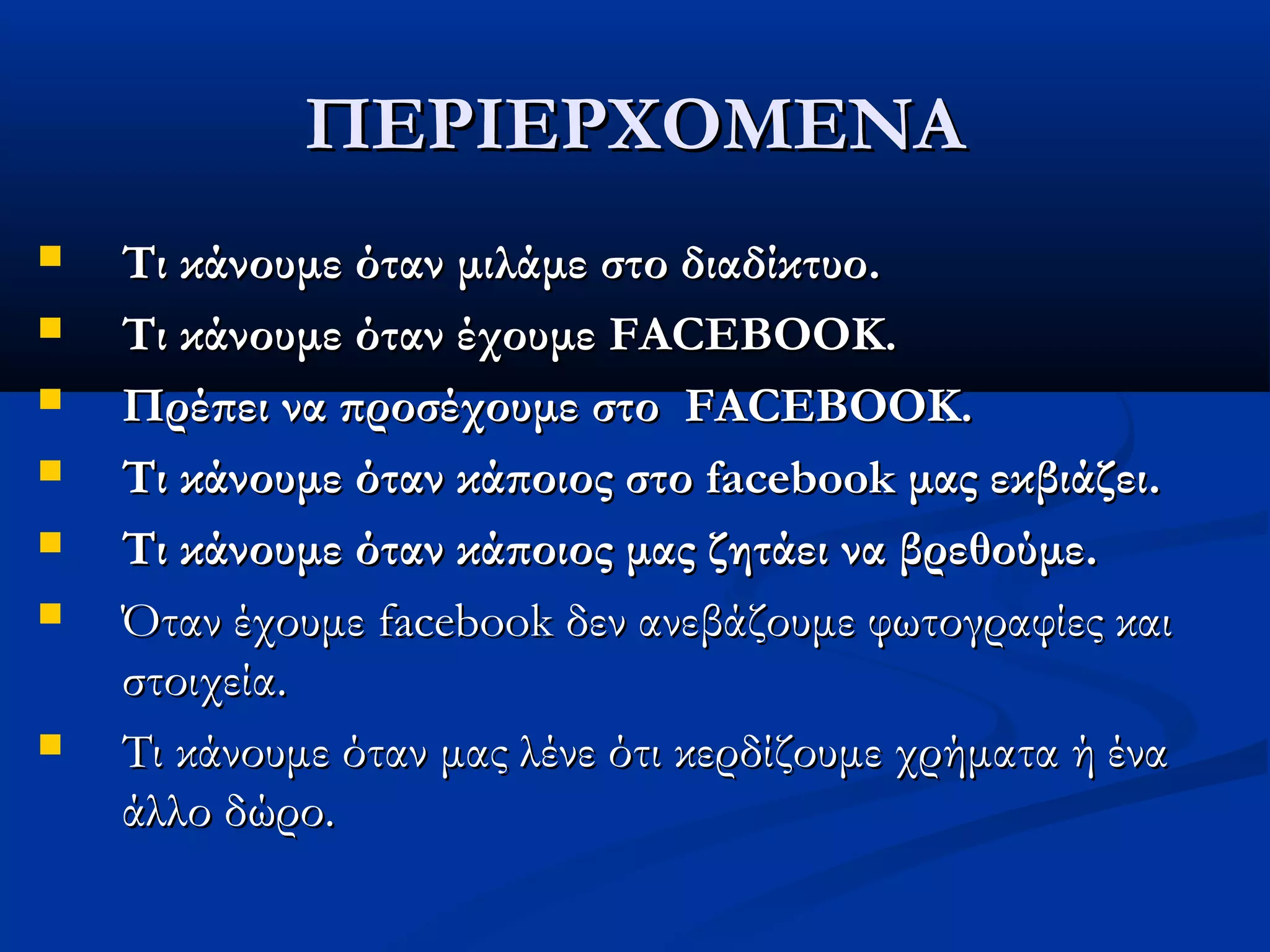 Τι κάνουμε ότανέχουμε FACEBOOK.