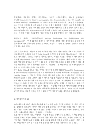 특히 의제 21의 24장에 여성과 지속가능한 개발’의 내용은 2000년까지 각국 정부는 여성