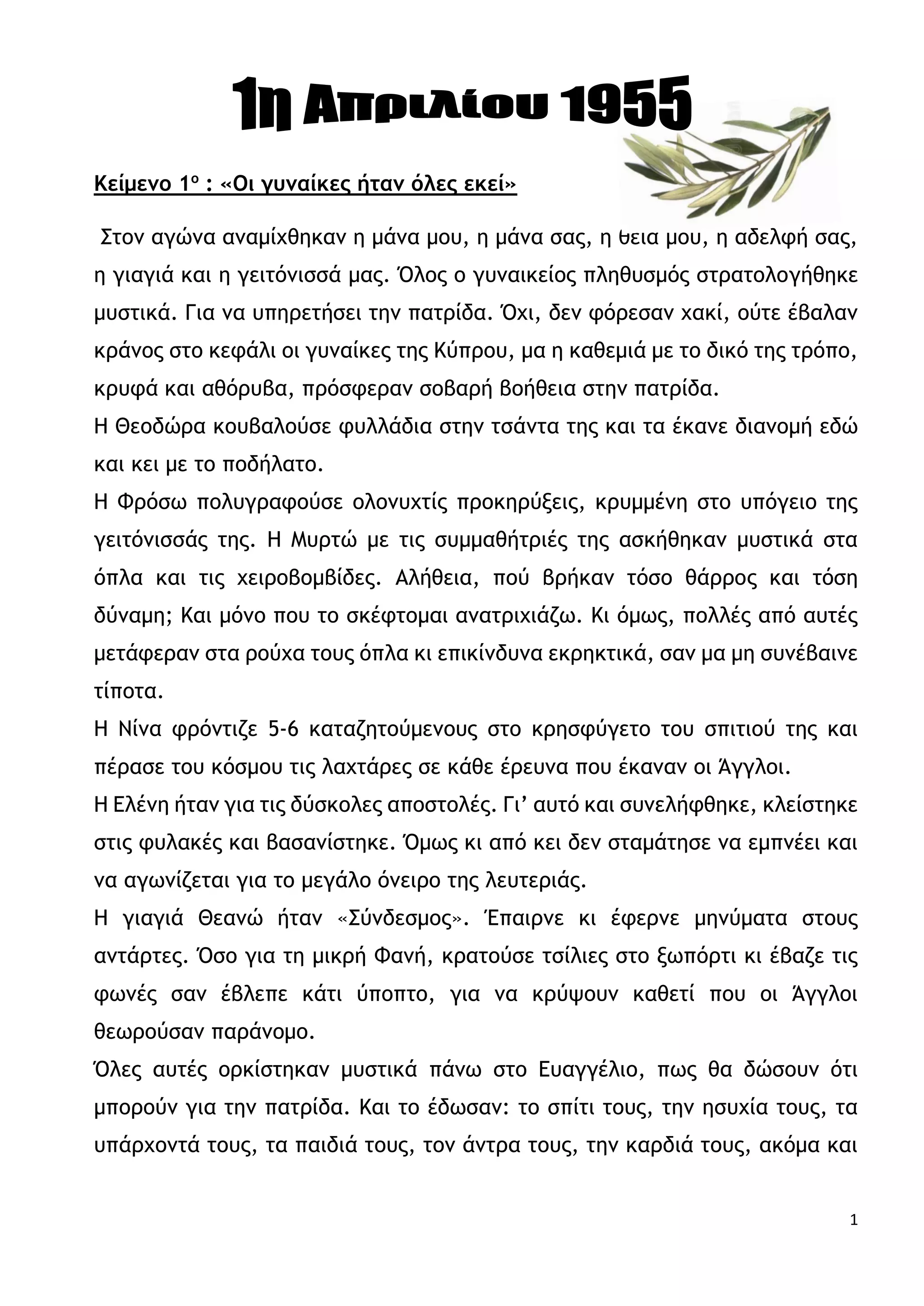 1. Πώς οι γυναίκες της Κύπρου συνέβαλαν στον απελευθερωτικό αγώνα του