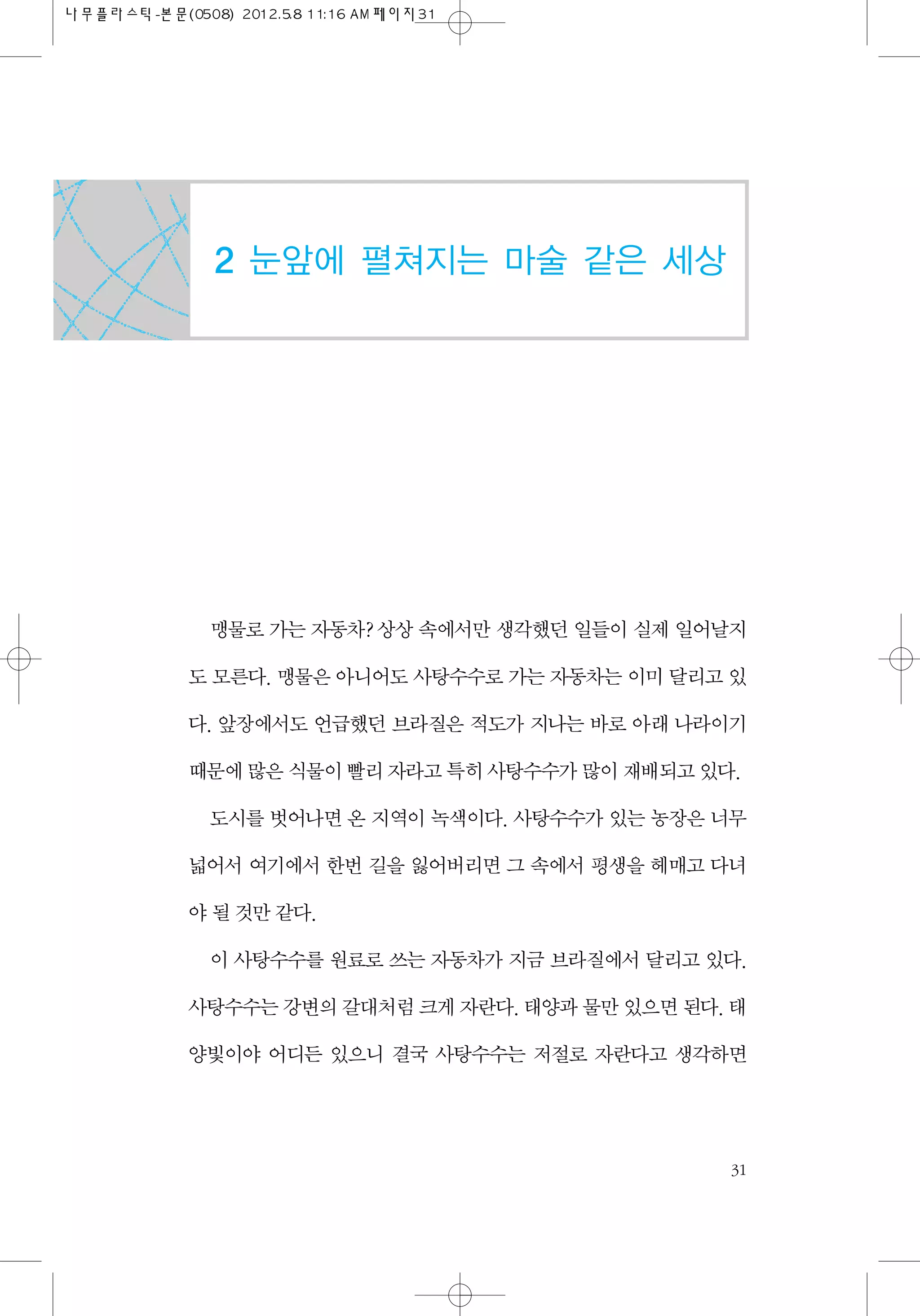 도 모른다. 맹물은 아니어도 사탕수수로 가는 자동차는 이미 달리고 있