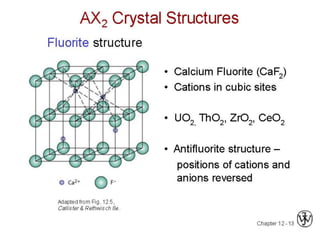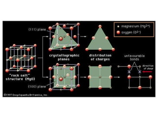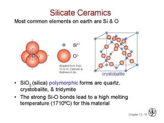 The document discusses the course MM-532 Ceramic Engineering which covers topics related to crystal structures, physical properties, mechanical properties, processing, and characterization of ceramic materials. It focuses on crystal structures, imperfections, phase diagrams, stress-strain behavior, powder processing, sintering, and characterization of ceramic products such as alumina and nitrides. The course includes a sessional and final exam.