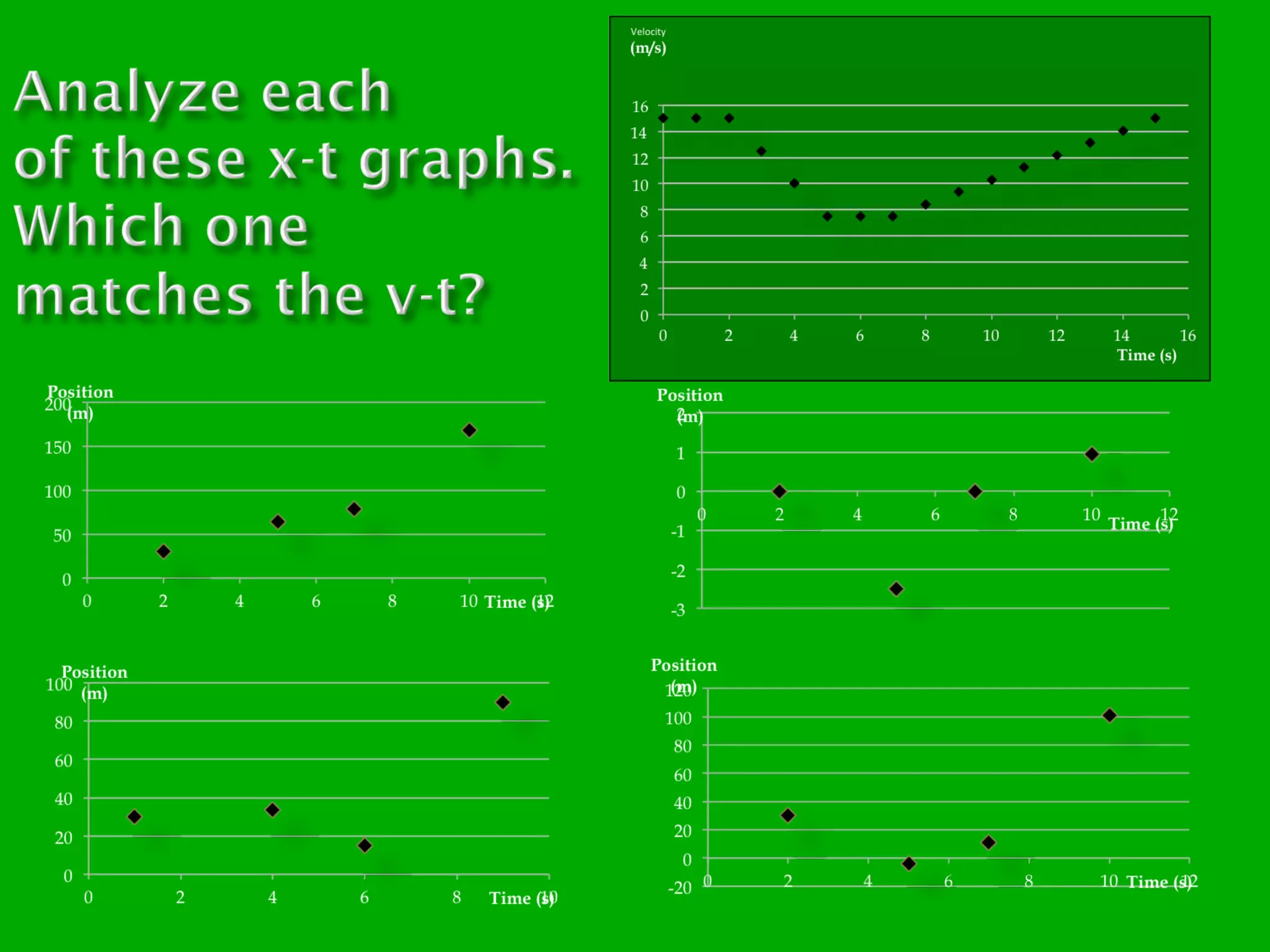 The document describes different colored slides used in a video. Slides with red backgrounds involve word matching problems. Slides with tan backgrounds involve concepts. Slides with green backgrounds involve graphing. Slides with olive backgrounds involve reading data tables.