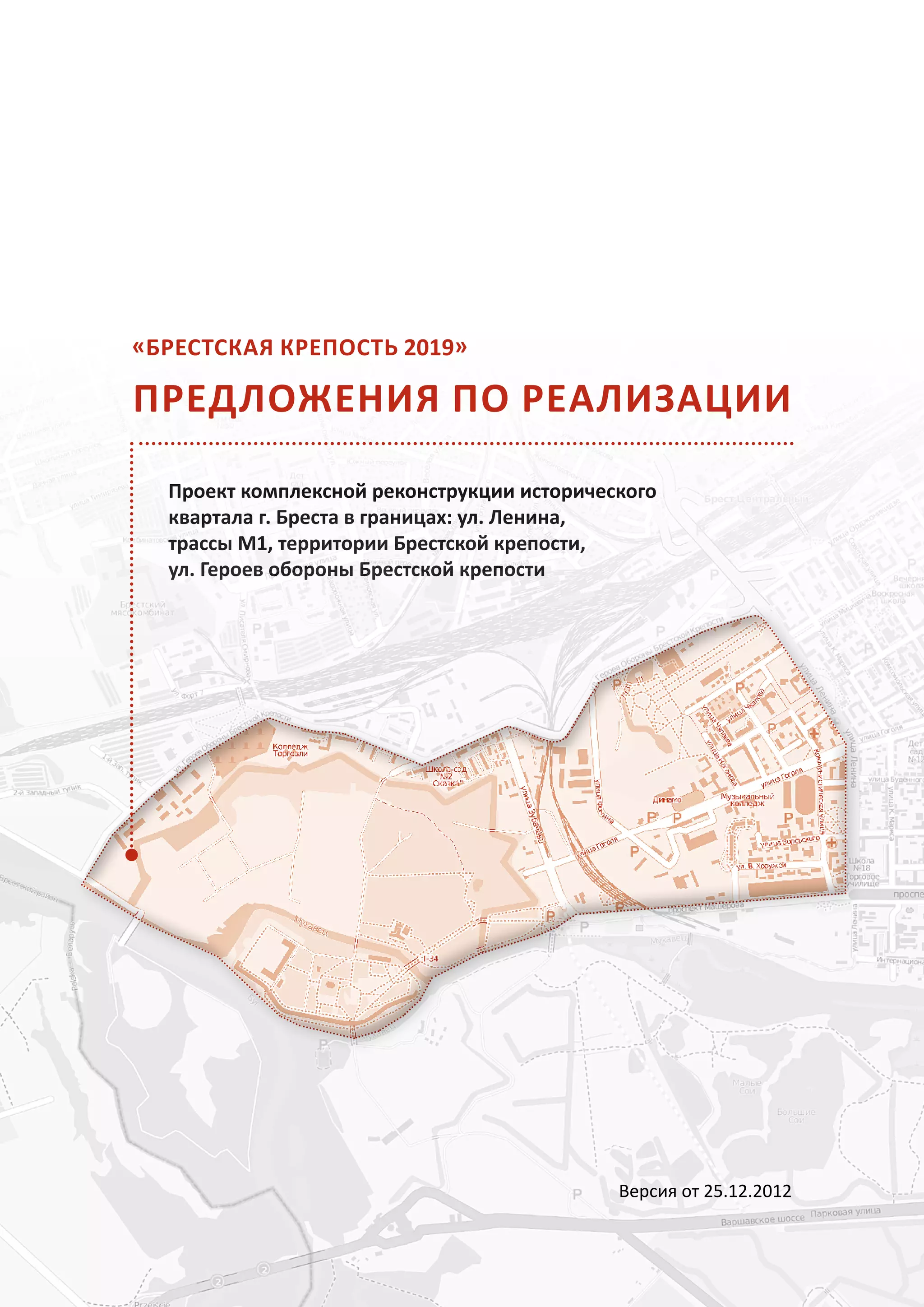 Проект «Брестская крепость 2019» назначен для комплексной реконструкции исторического квартала Бреста с целью создания уникального городского центра, который будет включать элементы архитектурно-исторического наследия и новые публичные пространства. Основное внимание уделяется спросу на территорию, способствуя притоку людей, в том числе туристов, и включая объекты различного назначения, такие как коммерческие, культурные и развлекательные. Ожидается, что проект будет финансироваться частными инвесторами, и срок окупаемости вложений составит не более 10 лет.