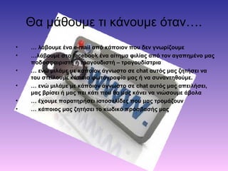 • Ότανκάποιος μας ζητήσει το κωδικό