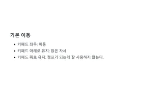 키패드 위로 유지: 점프가 되는데 잘 사용하지 않는다.