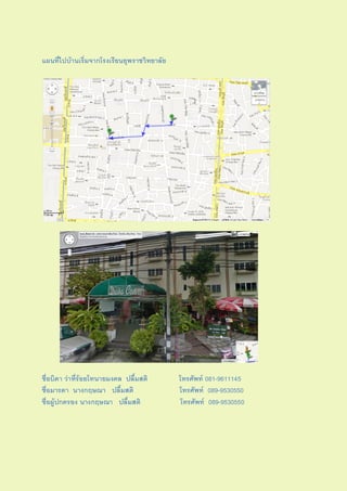 แผนที่ไปบ้านเริ่มจากโรงเรียนยุพราชวิทยาลัย ชื่อบิดา ว่าที่ร้อยโทนายมงคล ปลื้มสติ
