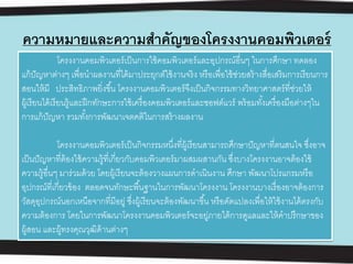 ความหมายและความสำคัญของโครงงานคอมพิวเตอร์