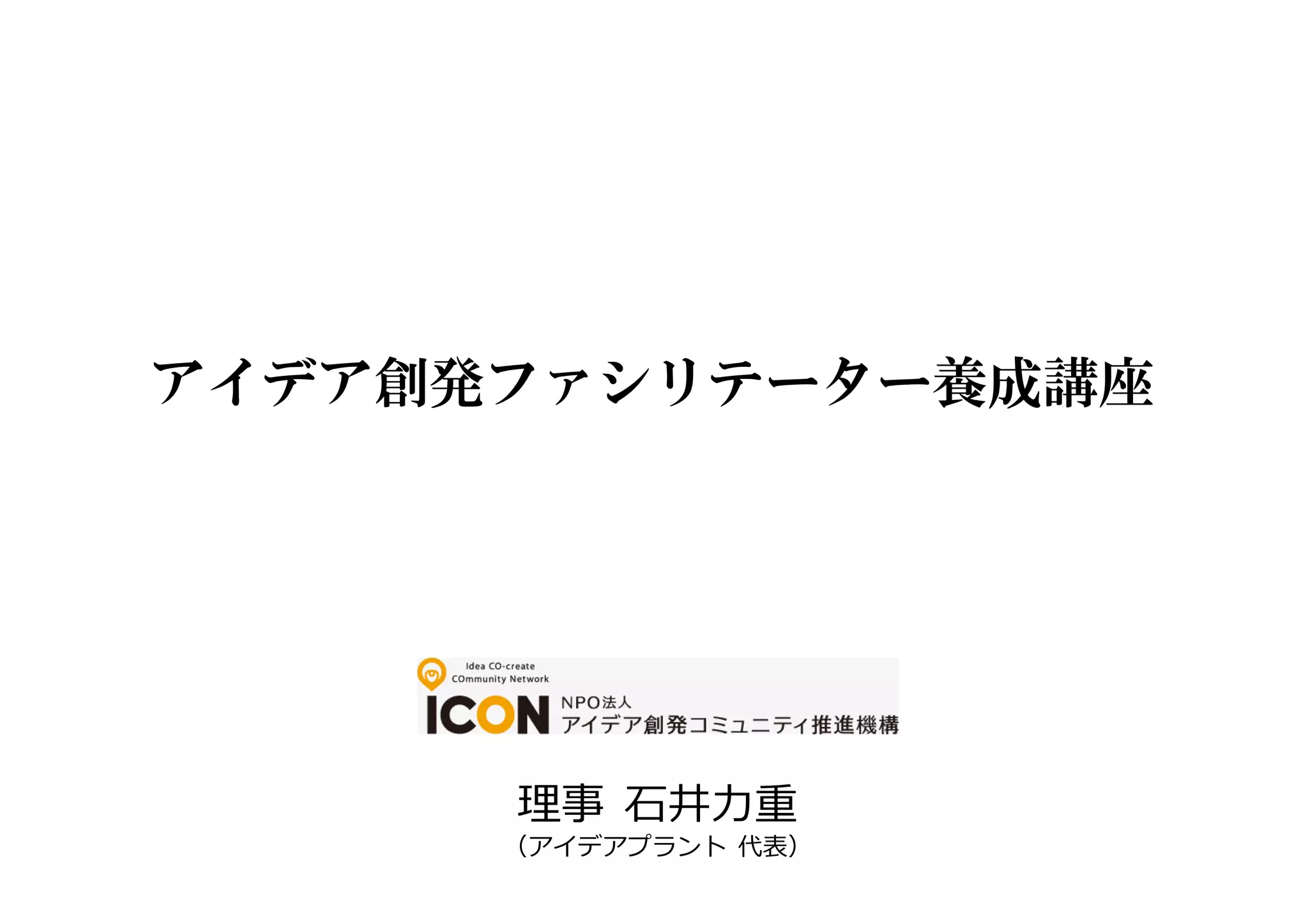 アイデア創発ファシリテーター養成講座 ご案内 http://www.i-con.or.jp/idea_master.html