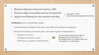 • Ίδρυση ανεξάρτητου ελληνικού κράτους: 1830