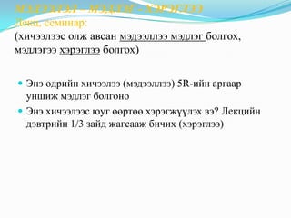 Энэ хичээлээс юуг өөртөө хэрэгжүүлэх вэ? Лекцийн
