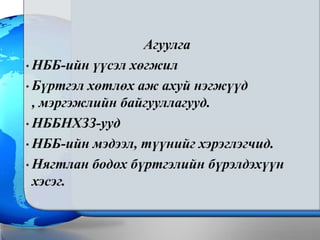 • НББ-ийн зорилгонь мэдээлэл