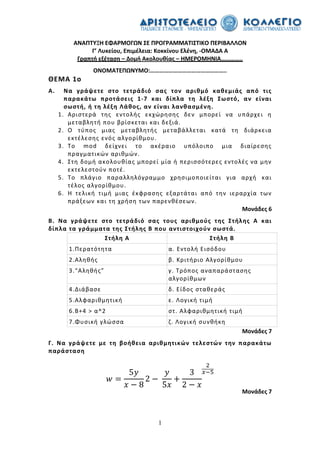 Γραπτή εξέταση – Δομή Ακολουθίας – ΗΜΕΡΟΜΗΝΙΑ…………..