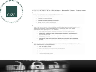 The CISSP (Certified Information Systems Security Professional) is an international certification granted by (ISC)2 that ensures practitioners have a common baseline of security knowledge. To obtain the CISSP, candidates must pass a rigorous exam that covers security concepts in various domains including security management practices, risk management strategies, security architecture, and cryptography. Maintaining the CISSP requires ongoing education to stay current with advances in the field. The certification demonstrates expertise in developing security programs, conducting risk assessments, and protecting information systems and assets.