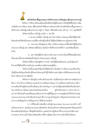หลักจิตวิทยาพืนฐานของการจัดกิจกรรมการเรี ยนรู้ แบบสืบเสาะหาความรู้ ้ จิตวิทยาการศึกษาเปรี
