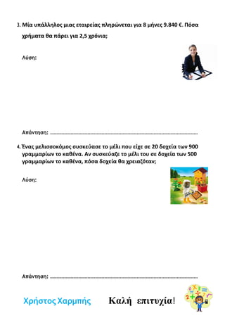 3. Μία υπάλληλοςμιας εταιρείας πληρώνεται για 8 μήνες 9.840 €. Πόσα