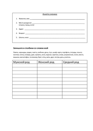 გაკვეთილის თემა Знакомство.Давайте познакомимся!Работас анкетой.