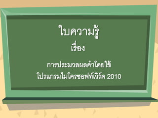 งานนำเสนอ หน่วยที่ 5 เรื่องที่ 2 6 วงเล็บ งานนำเสนอ หน่วยที่ 1 เรื่องที่ 3 การประมวลผลคำโดยใช้ microsoft word 2010