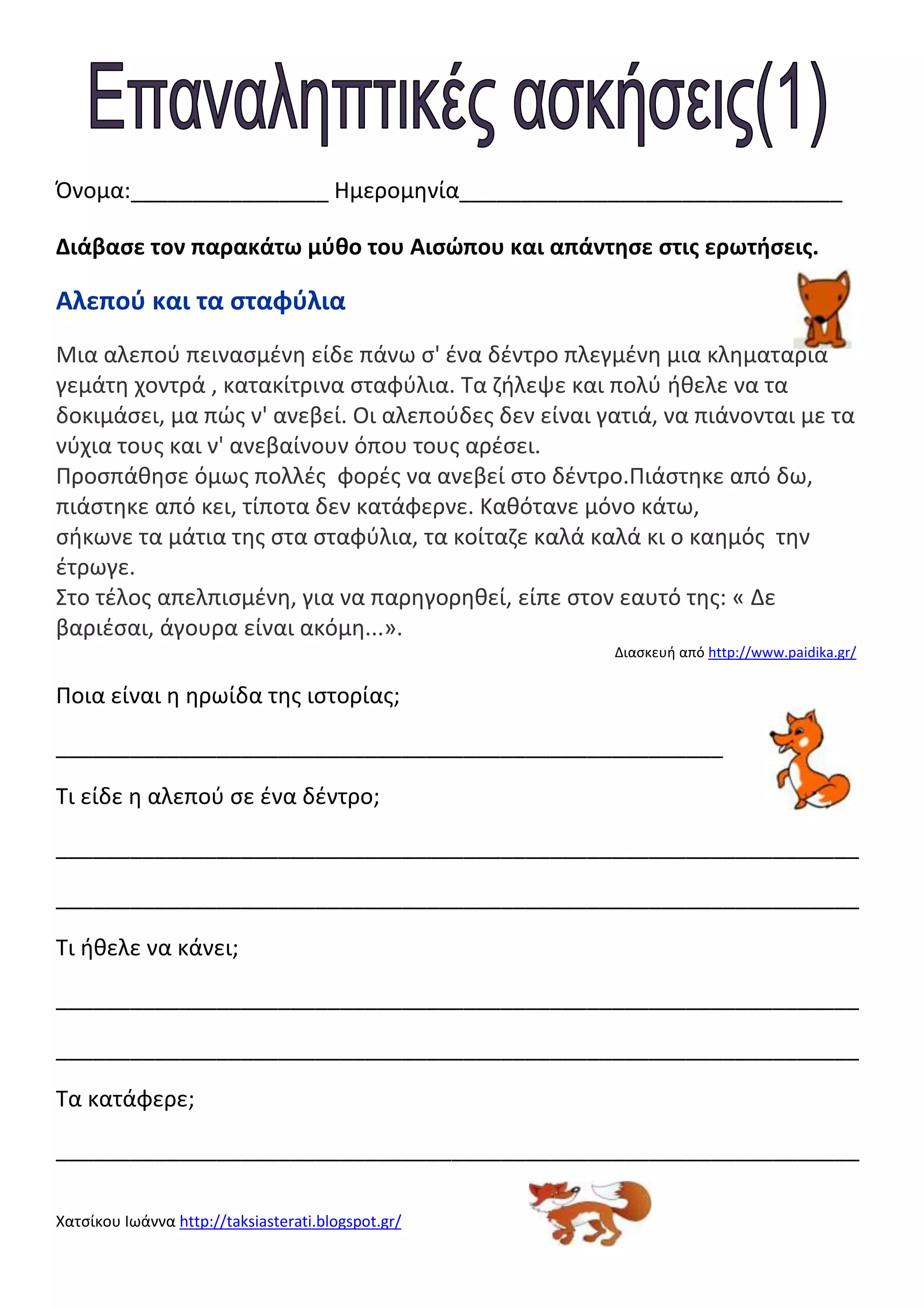 Διάβαςε τονπαρακάτω μφκο του Αιςϊπου και απάντθςε ςτισ ερωτιςεισ.