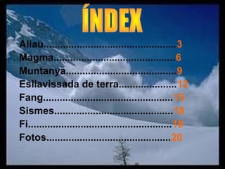 erupcions volcàniques o l’erosió causada