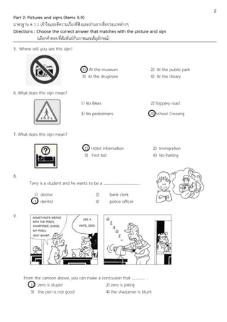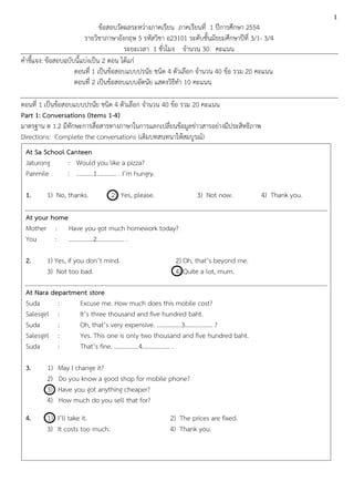 คาชี้แจง: ข้อสอบฉบับนี้แบ่งเป็น 2 ตอน ได้แก่