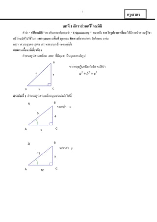 บทที่ 1อัตราส่ วนตรีโกณมิติ