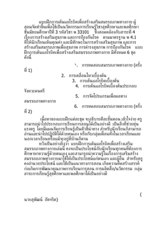 ชันมัธยมศึกษาปี ท่ี 3 รหัสวิชา พ 33101 ซ่ ึงสอดคล้องกับสาระท่ี 4