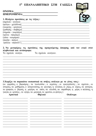 1.Φτιάχνω προτάσεις με τις λέξεις :
