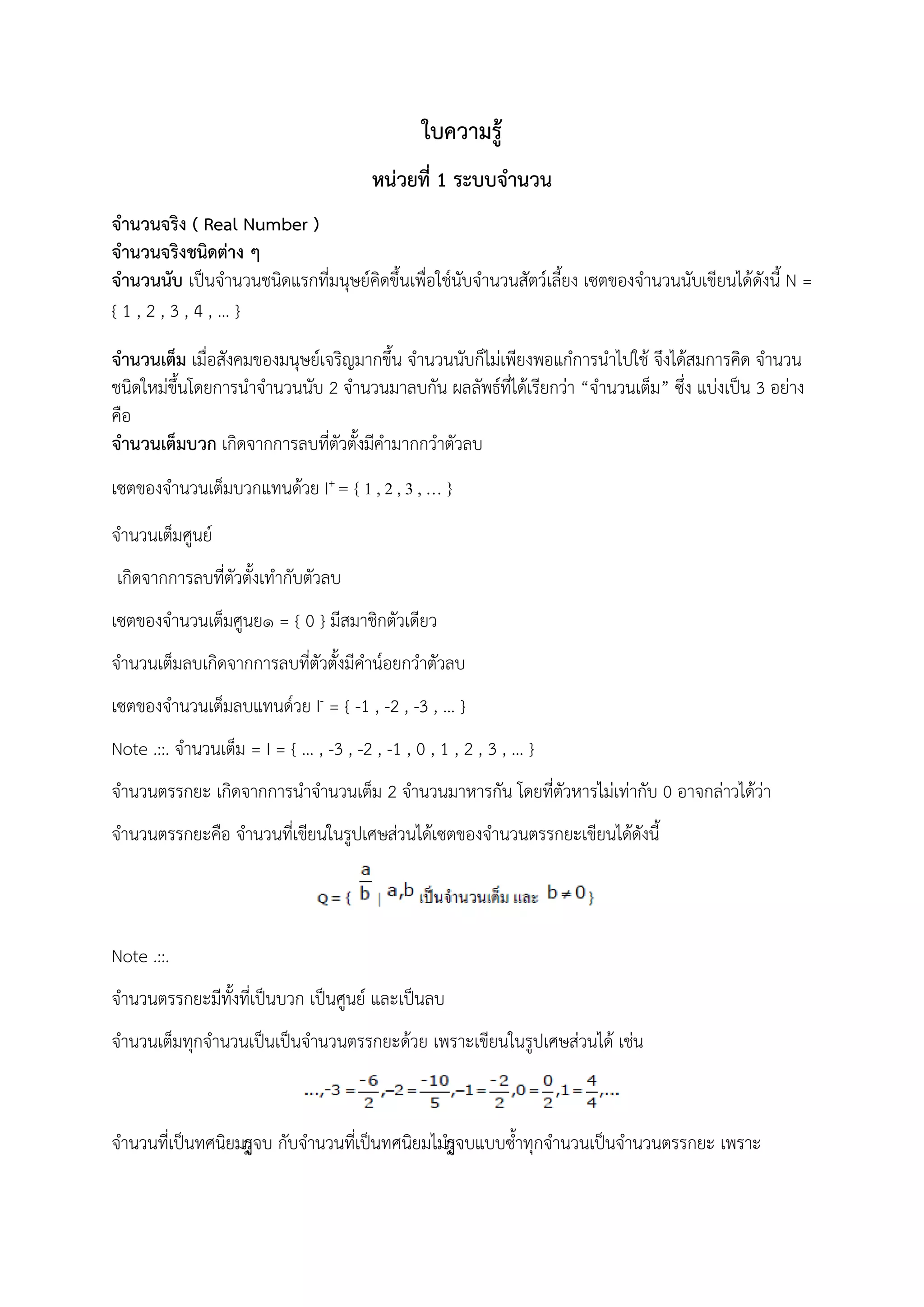 ใบความรู้ หน่วยที่ 1 ระบบจานวน จานวนจริง