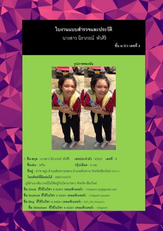 ใบงานแบบสารวจและประวัติ นางสาว นิราภรณ์ พัวศิริ ชั้น