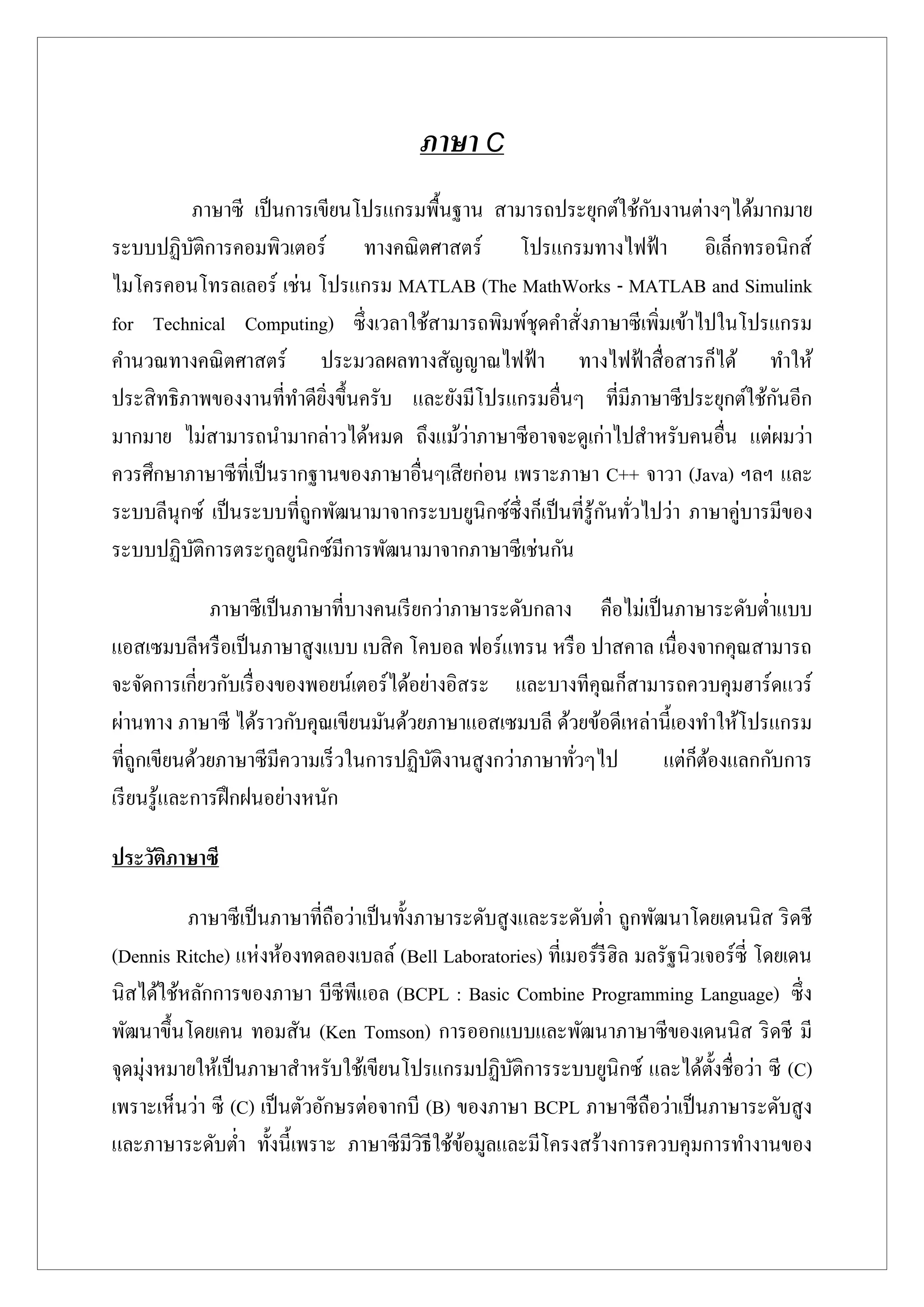 - ค.ศ. 1978 Brian W. Kernighan และ Dennis M. Ritchie ได้เขียนหนังสือเล่มหนึ่งชื่อว่า The C Programming Language และหนังสือเล่มนี้ทาให้บุคคลทั่วไปรู้จักและนิยมใช้ภาษา C ในการ เขียน โปรแกรมมากขึ้น