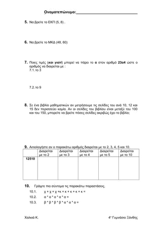9. Αιτιολογήστε αν ο παρακάτω αριθμός διαιρείται με το 2, 3, 4, 5 και 10.