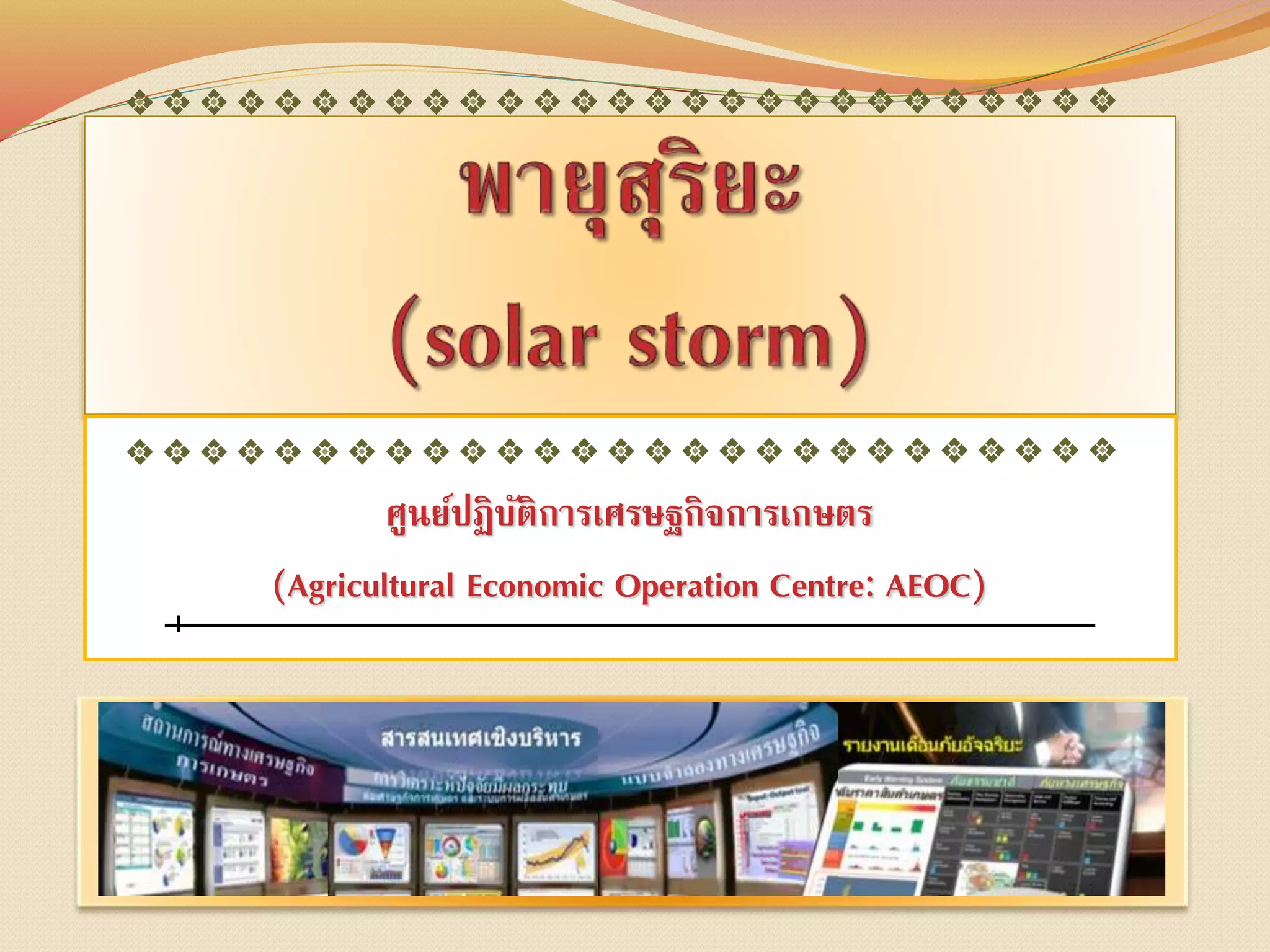 2.ผลกระทบที่จะเกิดขึ้นเมื่อเผชิญกับพายุสุริยะ 3.ผลกระทบที่มีต่อภาคการเกษตร