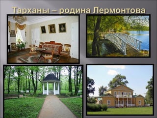 Документ посвящен жизни и творчеству Михаила Юрьевича Лермонтова, описывая его ранние годы, учебу и влияние семьи на формирование личности. Приведены детали о его детстве в Тарханах и о первых литературных впечатлениях, а также о непростой любви к Екатерине Сушковой. Завершается описание его трагической смерти на дуэли в 1841 году и похоронных церемониях.