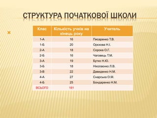 СТРУКТУРА ПОЧАТКОВОЇ ШКОЛИ