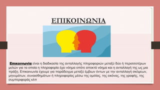 Επικοινωνία είναι ηδιαδικασία της ανταλλαγής πληροφοριών μεταξύ δύο ή περισσοτέρων