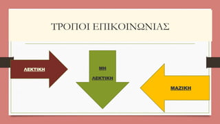 μηνυμάτων, συναισθημάτων ή πληροφορίας μέσω της ομιλίας, της εικόνας, της γραφής, της