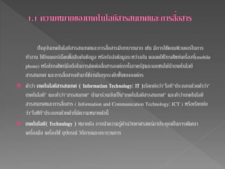 ความหมายของเทคโนโลยีสารสนเทศและการสื่อสาร PDF