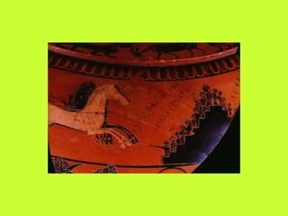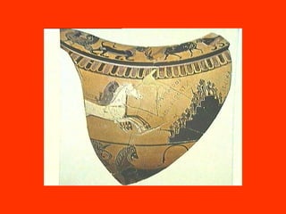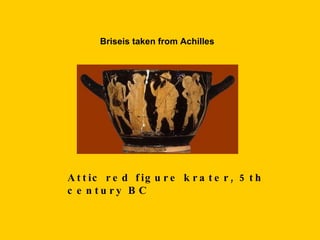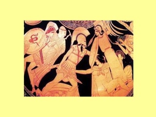 5 η ΕΙΚΟΝΑ Οι Αχαιοί σηκώνουν το κορμί του νεκρού Πάτροκλου, ενώ η ψυχή του πετάει τριγύρω με τη μορφή πάνοπλου πολεμιστή. Ερυθρόμορφος κρατήρας περίπου 500 π.Χ. Ακράγας Αρχαιολογικό Μουσείο (αντίγραφο).