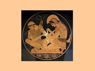 2η ΕΙΚΟΝΑ ΟΑχιλλέας φροντίζει το πληγωμένο χέρι του Πάτροκλου. Ερυθρόμορφος κύλικας, 500 π.Χ. περ. Βερολίνο, Κρατικό Μουσείο (αντίγραφο).