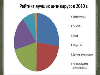 Документ подробно рассматривает компьютерные вирусы, их историю и признаки заражения. Выделяются основные классификации вирусов, такие как файловые, загрузочные, макровирусы и сетевые, а также методы их обнаружения и удаления. Важными мерами защиты рекомендуются использование антивирусных программ и осторожность при работе с программами из глобальных сетей.