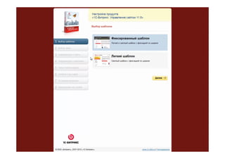 Документ описывает платформу «1с-‐битрикс» для разработки интернет-магазинов, подчеркивая её высокую производительность, безопасность и интеграцию с системами учета. Платформа предлагает более 1000 готовых функциональных возможностей, удобно управляет каталогами товаров и процессом оформления заказов. Она также поддерживает интеграцию с CRM и различными платежными системами, позволяя бизнесам эффективно управлять онлайн-продажами.
