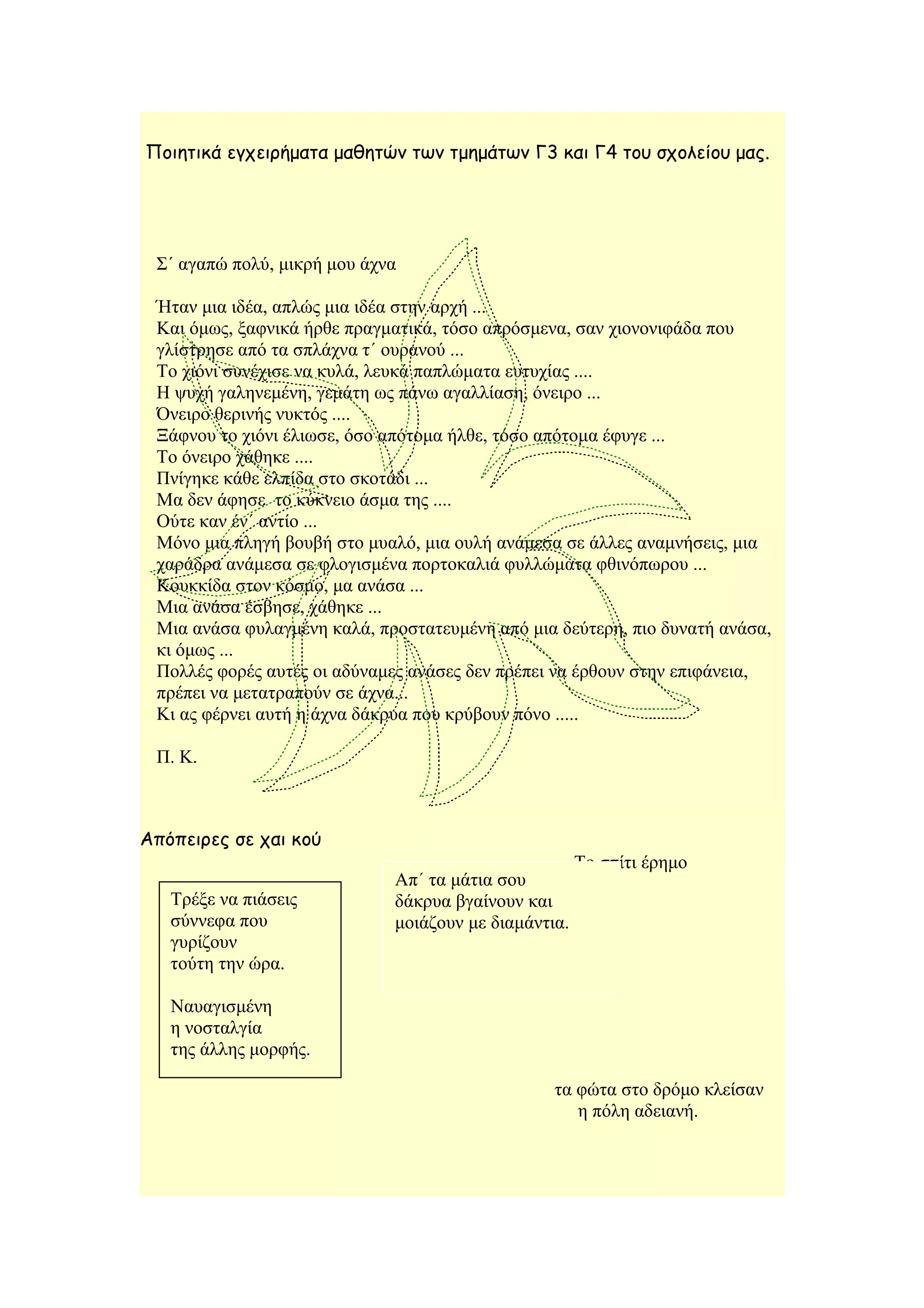 Ποιητικά εγχειρήματα μαθητώντων τμημάτων Γ3 και Γ4 του σχολείου μας.