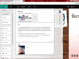 (กลางภาค) ให้นักเรียนจัดทา ClipVDO ความยาวประมาณ 5 นาทีตั้งแต่ Title – Credit แนะนาสารเคมีที่พบในชีวิตประจาวัน 1 ชนิด โดยบอก (สูตรเคมี/โมเลกุล) เช่น น้า H2O ◦ ลักษณะกายภาพที่สังเกตได้ เช่น รูปร่าง สี สัมผัส สถานะ อุณภูมิ เป็นต้น ◦ ลักษณะทางเคมี เช่น กลิ่น รส ค่ากรดด่าง การละลาย การตกตะกอน เป็นต้น ◦ การใช้ประโยชน์ในชีวิตประจาวันพร้อมแสดง/สาธิตการใช้ประโยชน์ หลังจากนั้นให้นักเรียนจัดทาเนื้อหาบนเว็ปไซต์ Sway.com โดยสมัครเข้าใช้ งานฟรีจาก hotmail ประกอบด้วยหน้าปก คานา แนะนาสมาชิกกลุ่ม เนื้อหาที่เกี่ยวข้องกับสารเคมีนั้นๆ คลิป VDO บรรณานุกรมและขอบคุณ กาหนดส่งงานวันที่ 1 มิถุนายน 2558 โดยแชร์เว็ปแบบสาธารณะที่หน้าเฟส ครูวิชัย Wichai Likitponrak.facebook นะครับ