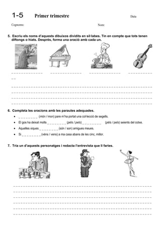 5. Escriu els noms d’aquests dibuixos dividits en síl·labes. Tin en compte que tots tenen