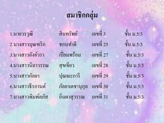 1.นายวรวุฒิ สินทรัพย์ เลขที่3 ชั้น ม.5/3