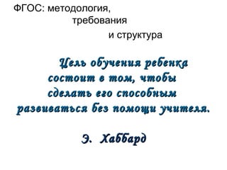 Документ посвящен федеральным государственным образовательным стандартам (ФГОС) основного общего образования в России, включая методологию, требования и структуру образовательного процесса. Основная цель обучения заключается в обеспечении самостоятельного развития ученика, а образовательные подходы эволюционируют от унифицированного образования к индивидуализированному, признающего различные потребности обучающихся. Вводятся изменения в образовательные технологии и содержание учебных программ, акцентируя внимание на компетентностном подходе и формировании универсальных учебных действий.