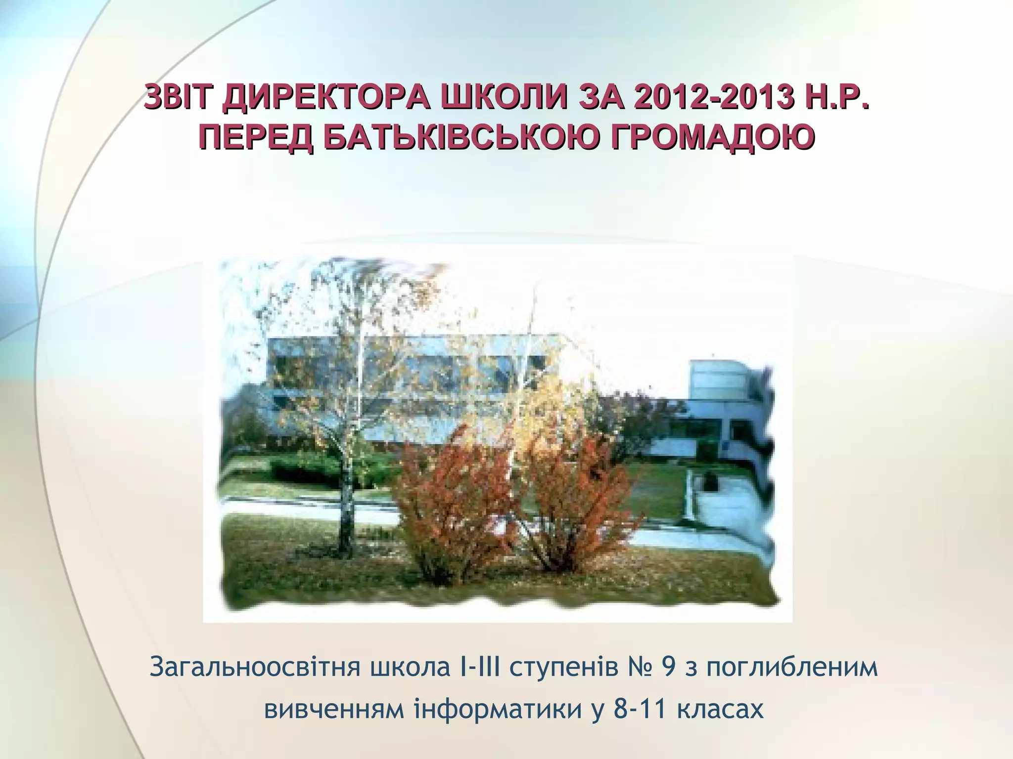 ЗВІТЗВІТ ДИРЕКТОРА ШКОЛИДИРЕКТОРАШКОЛИ ЗА 2012-2013 Н.Р.ЗА 2012-2013 Н.Р.