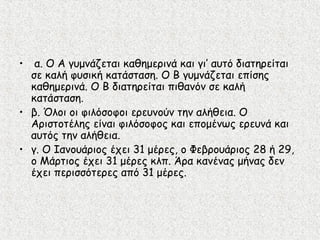 • γ. Ο Ιανουάριος έχει 31 μέρες, ο Φεβρουάριος 28 ή 29,